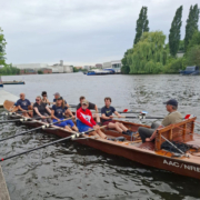 Improvisationstalent, Humor und ein bisschen Abenteuerlust. Für unser Abenteuer auf der Dove-Elbe mussten wir nicht weit fahren. Der RC Bergedorf als wunderbarer Gastgeber ist nicht viele Schleusen entfernt. Ganze sechs Boote vom RV Bille waren am Start: vom muskelbepackten Herrenriemen Vierer bis zu unserer unschlagbar schlagzahlstarken Damenmannschaft – und mittendrin ein kleines, aber feines Backup-Boot: improvisiert, zusammengewürfelt, hochmotiviert.